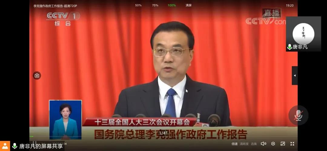 会议伊始,马洁老师为同学们介绍了本次培训的相关内容及考核标准,她希望同学们能够严于律己,学有所获,向党组织交上一份满意的答卷,真正做到知行合一。随后,唐非凡组织全体同学观看“第十三届全国人民代表大会第三次会议开幕会-国务院总理李克强的政府工作报告”,让同学们对全国两会精神有了更深入的了解。培训接近尾声之时,唐非凡再次强调相关纪律并介绍了下次党课的学习内容。