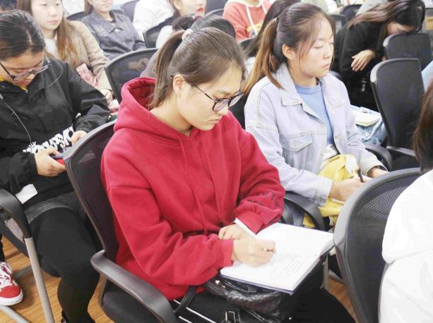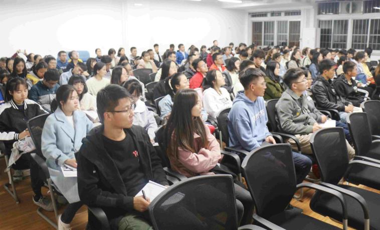分析化学学生党支部书记马丽蓉主讲,全体发展对象、入党积极分子及青马班培训学员共计150余人参加了讲座。