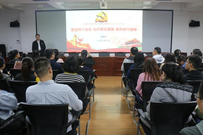党课上,高继明书记以什么“是四个自信”为引,并结合历史以及当下,多方面、多角度、多层次地给同学们讲述了党的相关知识。除此之外,高书记还将自身经历融入讲授,使同学们更加真切地感受到党的自信来源以及自信支撑。在讲课过程中,高书记幽默诙谐又不失深刻的话语,令在坐党员受益匪浅。