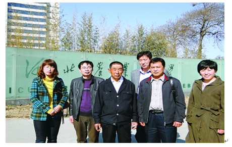 【李维贺(左三)与病逝儿子当年的同学在河北农业大学合影,同学们陪老人在河北农大参观。韩元信摄】