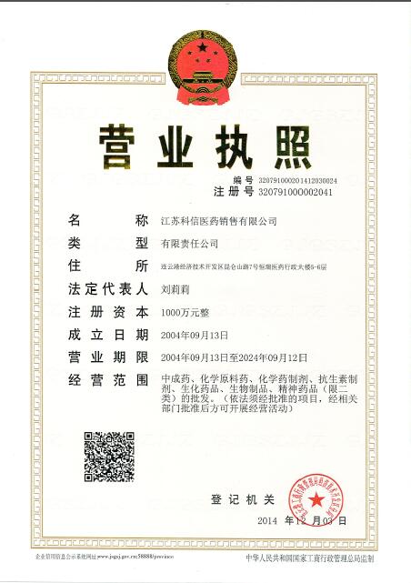 江苏科信医药销售有限公司隶属于江苏恒瑞医药股份有限公司,2014年“江苏恒瑞医药销售有限公司”更名为“江苏科信医药销售有限公司”。科信医药前身为恒瑞医药的新药销售科,至今发展壮大为通过国家GSP专业化认证的药品经营企业,承担着恒瑞医药的产品销售和市场推广的职能,是我国抗肿瘤药及造影剂产品的市场领跑者。
