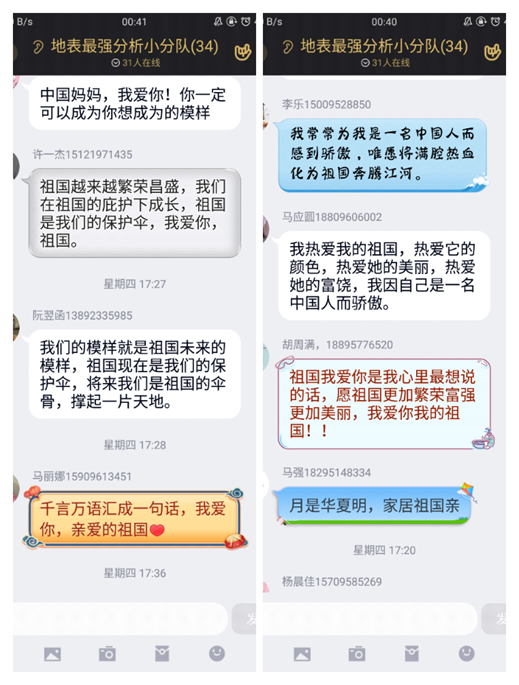 本次团日活动以班级团支部为单位,通过阅读新闻素材、观看视频短片、分享同学们在疫情期间所见所闻所感以及云绘画等多种形式展开。在活动过程中,各班班委充分运用提前准备好的材料为大家讲解此次疫情的相关情况,并为大家介绍疫情期间的感人事迹,表达对祖国的真挚告白。通过丰富多彩的活动形式,让同学们在成长、信念、奉献、坚强、守护、责任这六个方面认识到青年人的使命和担当,激励大家学习先进榜样身上的优秀品质。