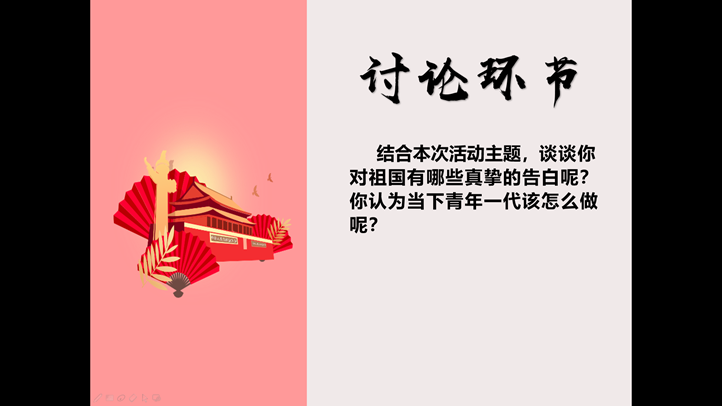 组织2018级、2019级各班团支部开展了“小我融入大我,青春告白祖国”主题团日活动。