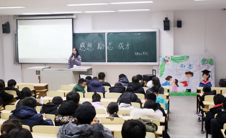 于文萃一教组织开展新生入学教育系列讲座之“感恩、励志、成才”优秀学生事迹报告会,本次报告会由2019年近现代科学家助学金获得者、学院兼职辅导员2016级材料化学专业姚佳和2018—2019学年国家奖学金获得者2016级化学工程与工艺专业贺婉萍主讲,2019级全体新生到场聆听。