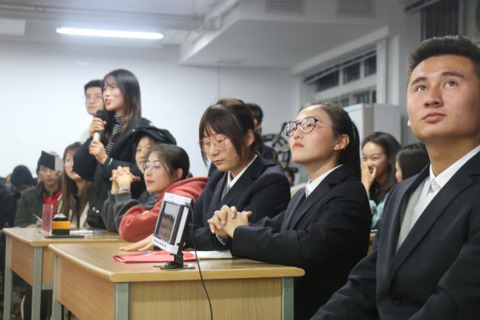 比赛中,各个代表队同台竞技,参赛选手们思路清晰,从容淡定,自信答题。在必答题环节,各个队伍团结协作,运筹帷幄,临危不乱,灵活运用丰富的法律知识; 抢答题和风险题环节,选手们和场下的亲友团精诚合作,快速反应,并及时相互补充遗漏;在自救的凤凰涅槃环节,选手们丰富的法律知识和团队之间的默契配合引得现场高潮迭起,观众掌声接连不断。易班上墙和有奖问答更是吸引了场下观众的积极参与,现场气氛欢快热烈。