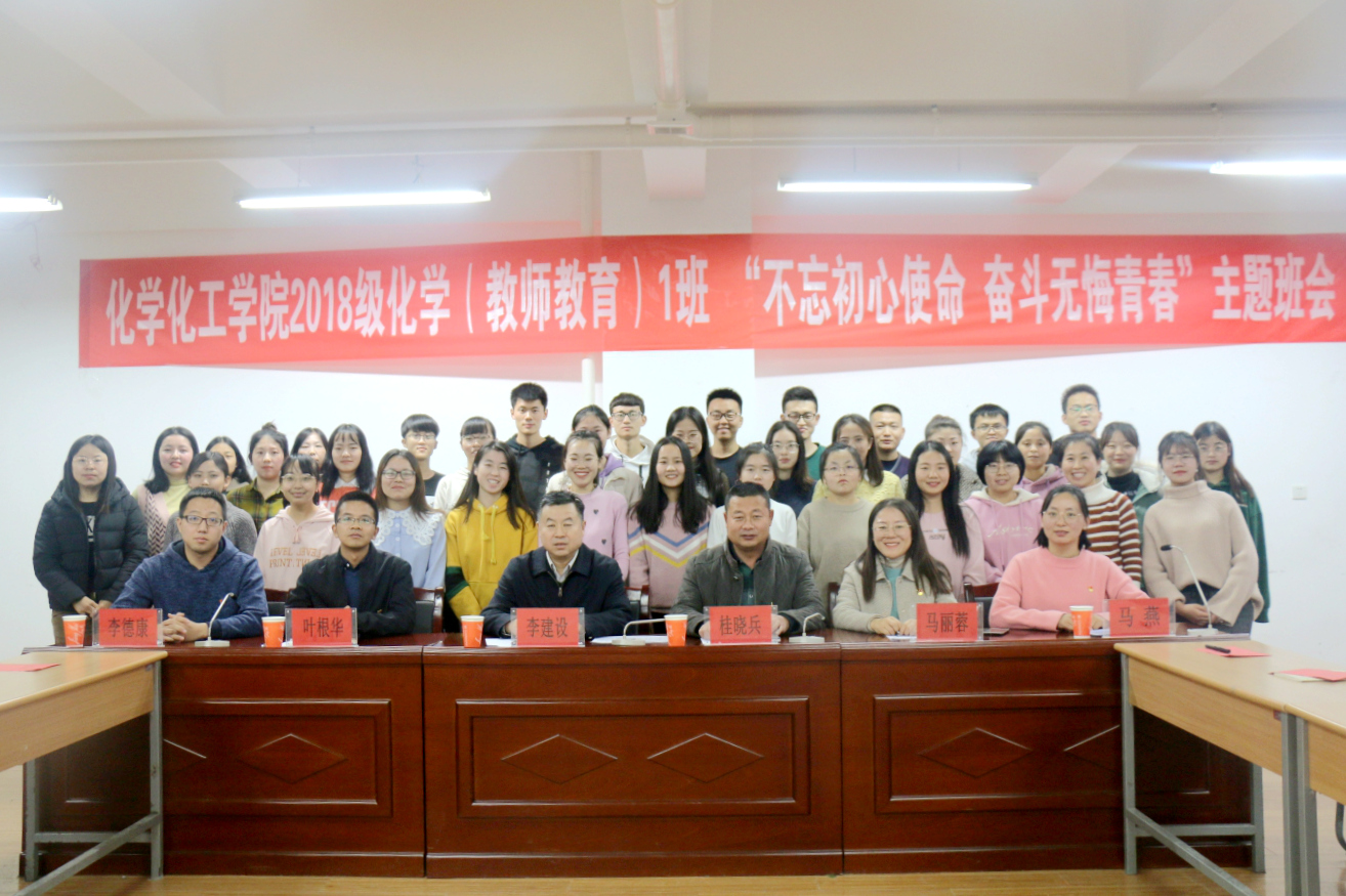 ,参与学院2018级化学(教师教育)1班同学们的 “不忘初心使命 奋斗无悔青春”主题班会。