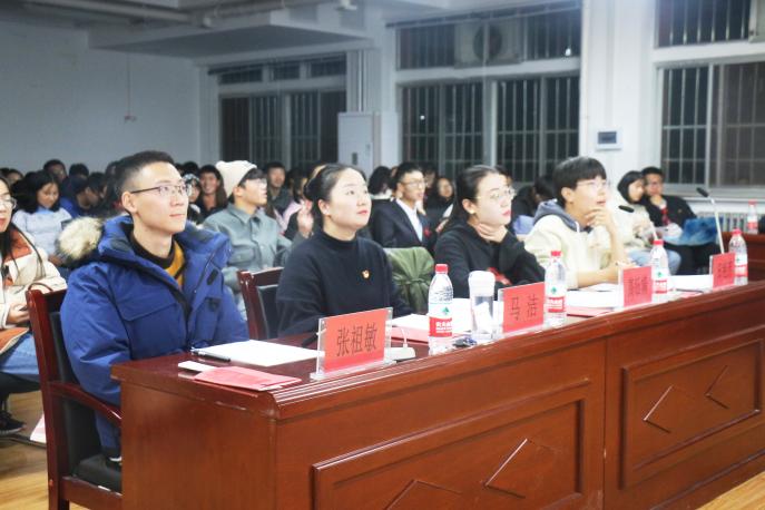辅导员马洁、第十届团委学生会主席张祖敏、第九届知化通讯社社长田艳芳、第九届自律委员主任高钰婧担任本次比赛评委,2019级本科生到场观看比赛。