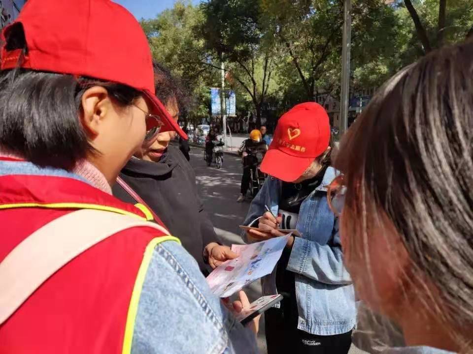 19日中午十二点半志愿者们准时集合出发,前往劝募地点。当换上志愿者红马甲时,路上行人纷纷投来好奇的目光。大家趁热打铁,快速将场地布置好后投入到劝募工作中去。志愿者们分组散开在街头开始“善行100”的讲解,回答路人的各种疑问。有很多人对此次活动表示理解和支持,但同时也有人不相信。尽管如此,志愿者并未因此而灰心丧气,而是相互鼓励,努力消除他人的不信任。最终在大家的共同努力下,志愿者们共劝募善款500元,为贫困地区儿童献出自己的爱心。