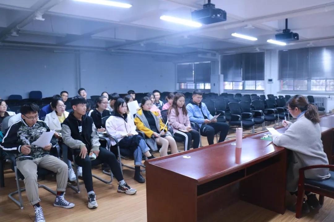 在知化楼115报告厅为2016级学生举行就业指导报告会,学生工作办公室主任王艳梅老师担任主讲人。