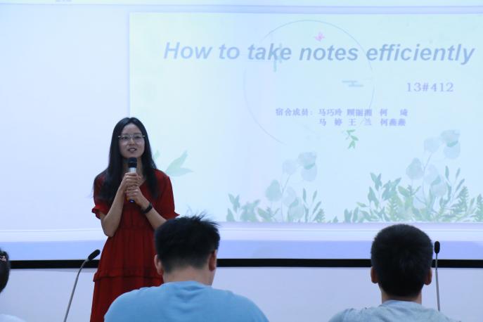 经过前期投票选拔,此次活动共有5个优秀宿舍代表与同学们分享经验。他们依次上台结合幻灯片,为同学们展示了自己的笔记,介绍了记笔记的方法及可行性,还根据同学们存在的问题给出了针对性建议,通俗易懂,简单明了,不少同学表示有很大收获。