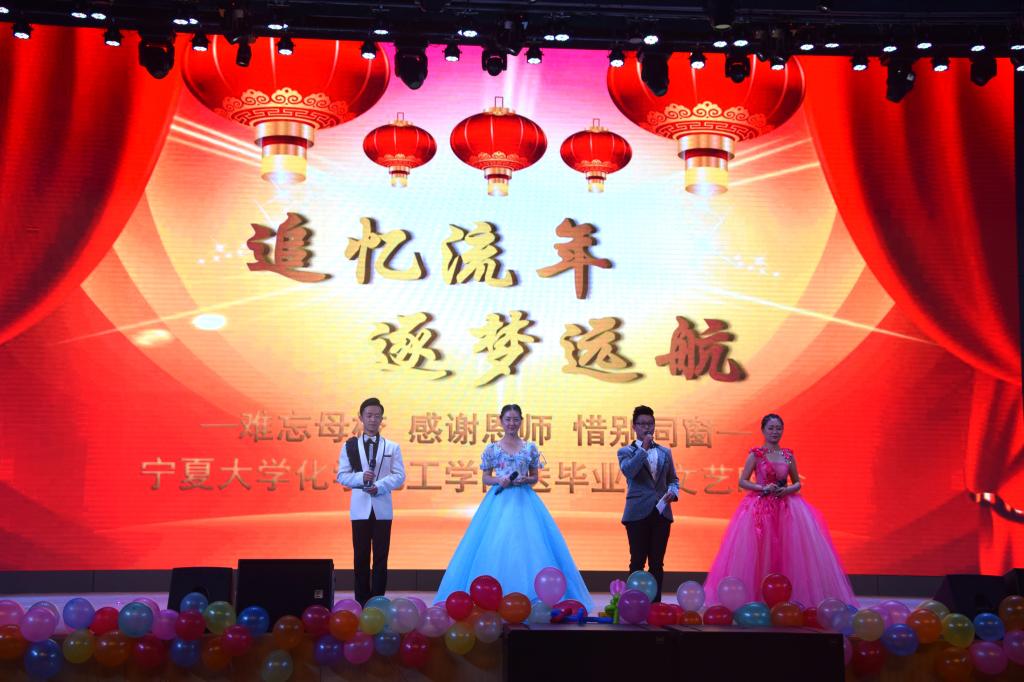 “追忆流年,逐梦远航” 2016年欢送毕业生晚会在大学生活动中心隆重举行。学院党委副书记潘瑞、副院长任建林、倪刚、全体辅导员老师、部分教师代表、各兄弟学院学生会主席、化工学院学生志愿支教八年的西夏区六小学生代表及学院近千名学生观看了此次晚会。