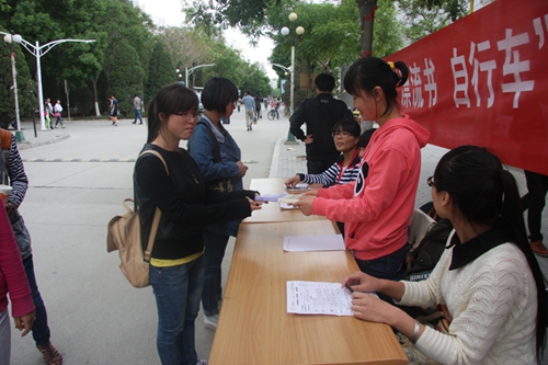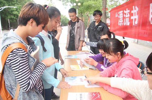 在校本部c区第二学生餐厅西侧举办了“漂流书 自行车”捐赠活动。
