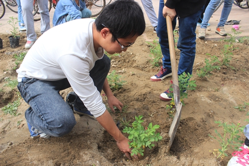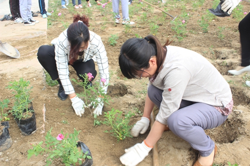 活动中,学院党委潘瑞副书记带领辅导员和各班级,对学院周边绿化区进行了草坪补种,对部分遭到深度踩踏的草坪重新种植草籽,学院自筹经费,在学院门前种下了300余株玫瑰花树。一些班级还主动承担起了草坪的修剪、浇灌和看护工作,同学们还制作了“人若有情花香逸,请君且行且珍惜”等一些列提示标语牌,提醒师生共同爱花护草,校园里也因此变得春意暖暖。