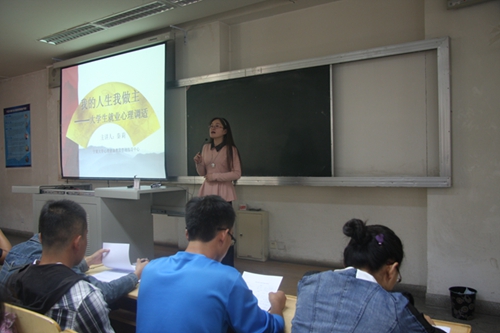 秦老师先以自身就业经历为例,告诉大家幸福的人生不仅需要专业的技能更需要高情商。面对就业的各种诱惑与选择用专业的技能加高情商展现自己的自信与实力。她通过几个心理小测验和在座的同学进行互动交流,探讨他们可能出现的各种不良心理并详细讲解了就业心理调适的方法与策略。