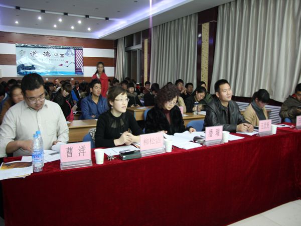 第三届大学生职业生涯规划大赛复赛。院党委副书记潘瑞、王彦庚和学生工作办公室老师出席并担任评委,并有来自12级各班的大众评委17人参与此次活动的评审。