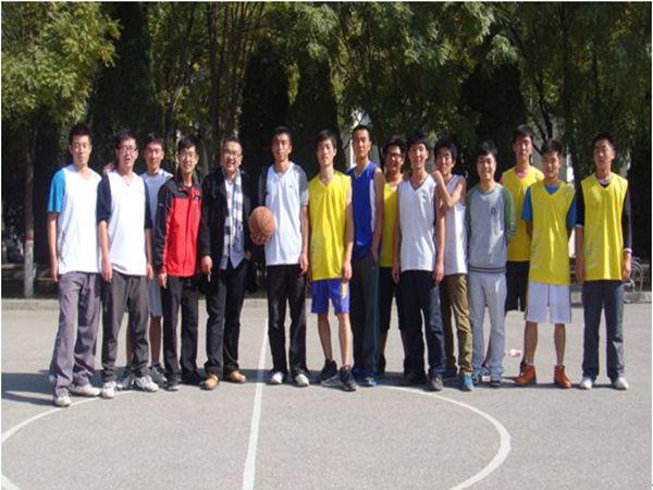 教师、12级及13级研究生组成。 凉爽的十月,虽不时的袭来一股凉意,但是参赛的队员们精神饱满,激情四射,随着一声哨响,比赛拉开帷幕,教师代表队的球员先声夺人,率先漂亮的打进一球,在第一节赛事中领先一步,赢得观众一片欢呼。与此同时,13级研究生代表队也不甘示弱,奋起追击过程中的配合也是极为默契。随着比赛的进行,场上竞争愈加激烈,球员们早已大汗淋漓,但这丝毫不影响球员们的热情,而场下的拉拉队也不甘落后,为队员们呐喊助威,再次将友谊赛推向了高潮。最终,两队以33比33的成绩为本次友谊赛画下了完美的句号。