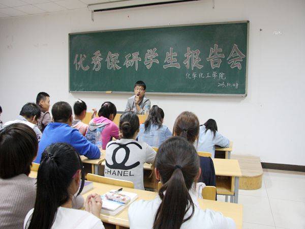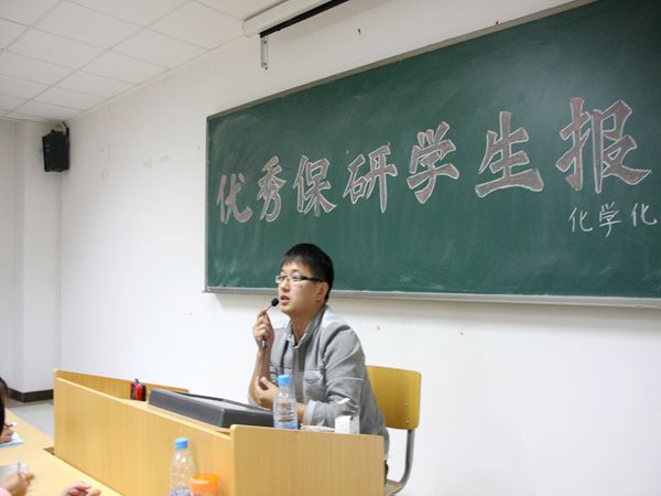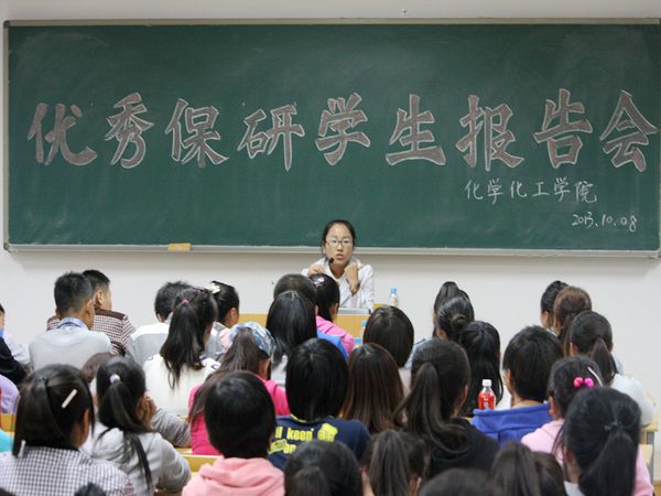 在C区L楼408教室举办优秀保研学生报告讲座,本次讲座邀请到了2009级毕业生樊奥楠和和2010级化学师范专业潘亚男同学作为优秀保研学生代表,2013级全体学生到场聆听。