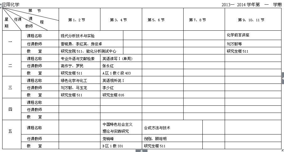 2013级全日制硕士研究生课表-应用化学