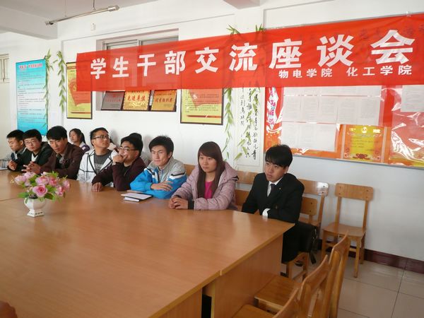 学生会主席马亮,首先他表示了对前来参加此次座谈会的物理电气信息学院的学生会干部的欢迎。接着双方以互相交流的方式,谈到了宿舍文化建设、学风建设,谈到了各部的主要职责、工作方式,谈到了与专业相结合的学科建设、丰富业余生活的文艺节目。风趣幽默的言语、活跃的气氛使得大家在交流工作经验的同时享受着轻松与快乐。