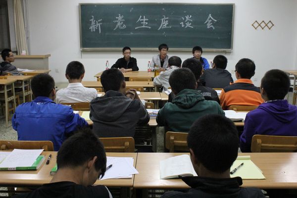 在A区C段12级学生教室举办老生见面交流座谈会。出席交流会的都是在学习生活方面有所建树的09级、10级学生,他们将通过这次交流会向新生们讲述学习方法、生活情趣、人际交往等方面的问题。