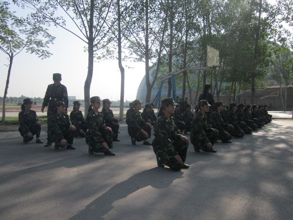 醒目的军训口号“流汗流血不流泪,掉皮掉肉不掉队”感召下,经过短暂休息又重新回到军训场地。