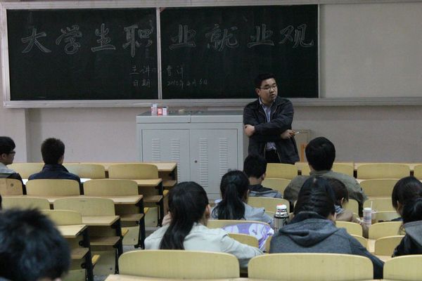 4月6日中午12点半,在污污漫画 北校区一教122教室,由曹洋老师主讲的以”大学生职业就业观“为主题的讲座准时开始。