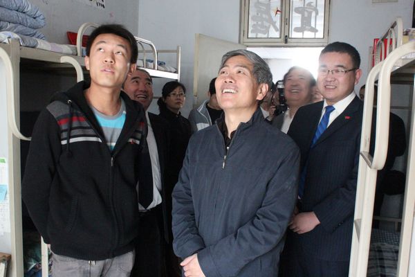 2月21日下午,自治区党委副书记崔波在我校党委书记齐岳、校长何建国等陪同下,莅临我校12号公寓楼检查学生公寓党建、学生住宿情况等工作。