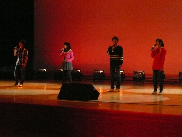 灯光闪烁的舞台,瑰丽炫彩,舞台上的他们从容不迫,歌声缓缓飘出,散发着一种魅力,凝聚着一股力量。台下的观众被他们动听的歌声所感染,不时响起阵阵掌声,爱,因为在心中,如阳光、如雨露沐浴在心间。通过激烈的角逐,他们精彩的演出获得了优秀奖。