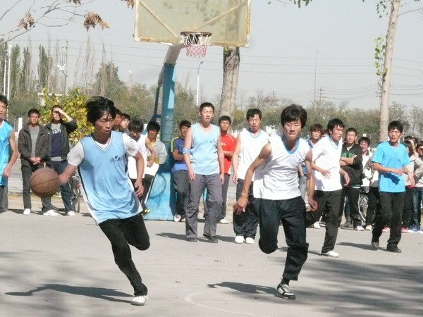 在C区篮球场举行趣味篮球比赛,11级全体同学和09级、10级部分同学参加本次篮球比赛。