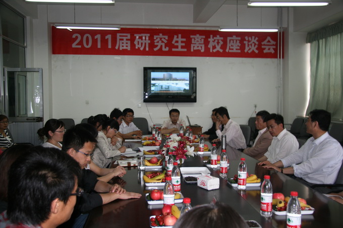 刘万毅院长、党总支潘瑞副书记、学办主任柳松洁,硕士生导师胡奇林教授,高作宁教授,杨天林教授,杨敏丽教授,杨金会教授,倪刚教授以及2011届研究生参与座谈。