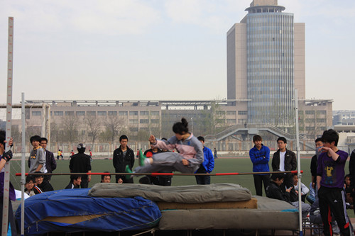学生会的组织下紧张有序地在短跑、长跑、跳高、跳远、铅球等项目中展开了激烈的角逐。赛场上的运动健儿们激情飞扬,奋力拼搏。在男子100米决赛中,运动健儿们像猎豹一样,速度敏捷、迅疾的冲向了终点!跳高场地的运动员们也不甘示弱,身影轻巧,像羚羊一样在上空跳跃。红色的跑道像一道蜿蜒的风景,为参加1500米的运动健儿们默默鼓劲…赛场的气氛炙热高涨,呐喊助威的加油声不绝于耳。动感的音乐,气贯长虹的呐喊,洋溢着青春的活力,为此次比赛更添一道亮点!