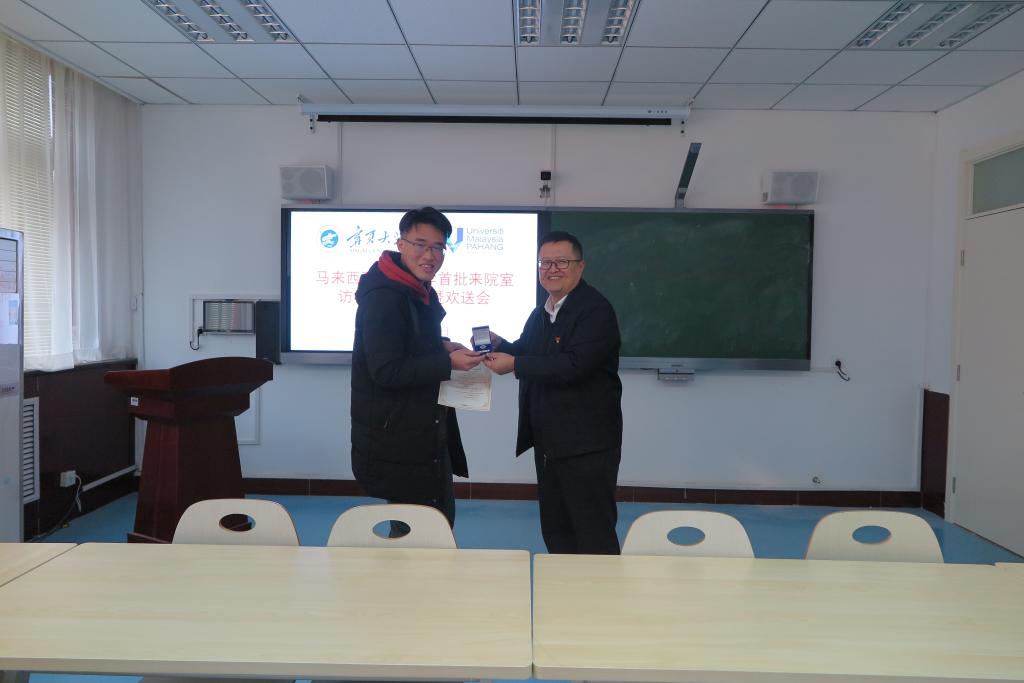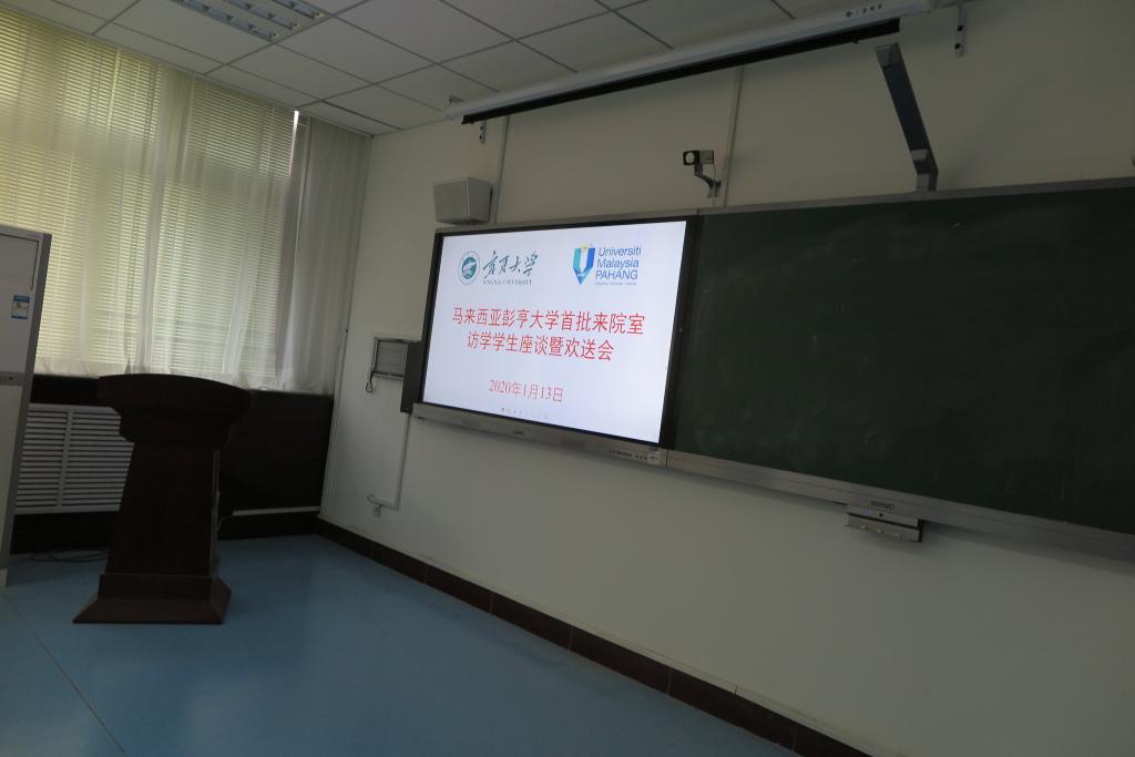 为进一步加强院室国际合作交流工作,欢送马来西亚彭亨大学首批来访学生顺利完成访学任务,返回马来西亚,1月13日下午,院室党委书记高继明,副书记桂晓兵、刁俊,国重室常务副主任赵天生,副院长任永胜,学办主任王艳梅,项目负责人范辉老师,在知化楼303室,与首批马方6名学生举行座谈暨欢送会。