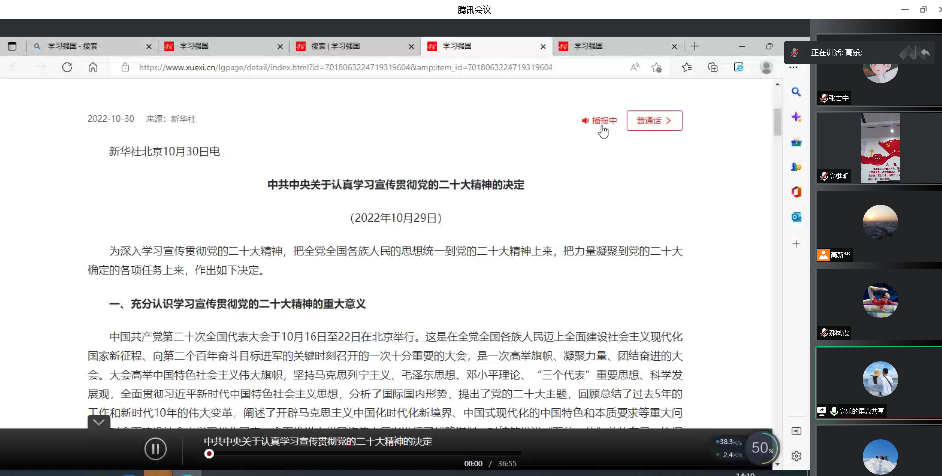 11月9日下午,学院召开传达学习党的二十大精神大会暨全体教职工大会。会议全文学习了《中共中央关于认真学习宣传贯彻党的二十大精神的决定》。党委书记高继明主持会议,学院部分领导班子成员、系主任、工会委员和部分教工支部书记线下参会,其他教职工通过线上形式参加会议。