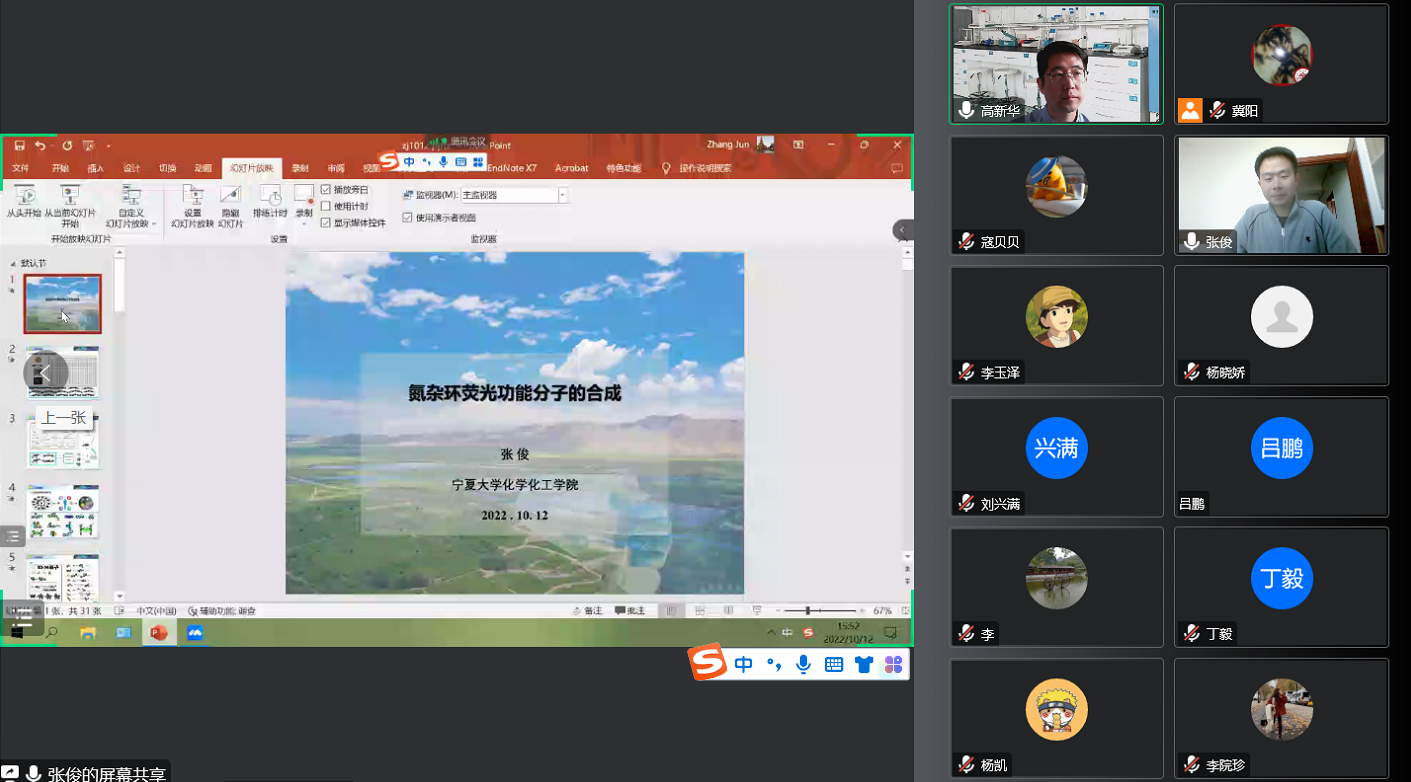 10月12日下午,青年教师协会举办的青年教师论坛第七次活动顺利召开,由于学校疫情防控要求本次论坛活动采用全线上方式进行。本学期采用校外专家和校内青年结合的模式,进一步加强与校外优秀青年的交流与合作。论坛邀请国家自然科学基金优秀青年基金获得者、陕西师范大学赵玉明教授,学院寇贝贝博士和张俊博士作报告,学院50余名青年科研骨干及研究生参与了交流。