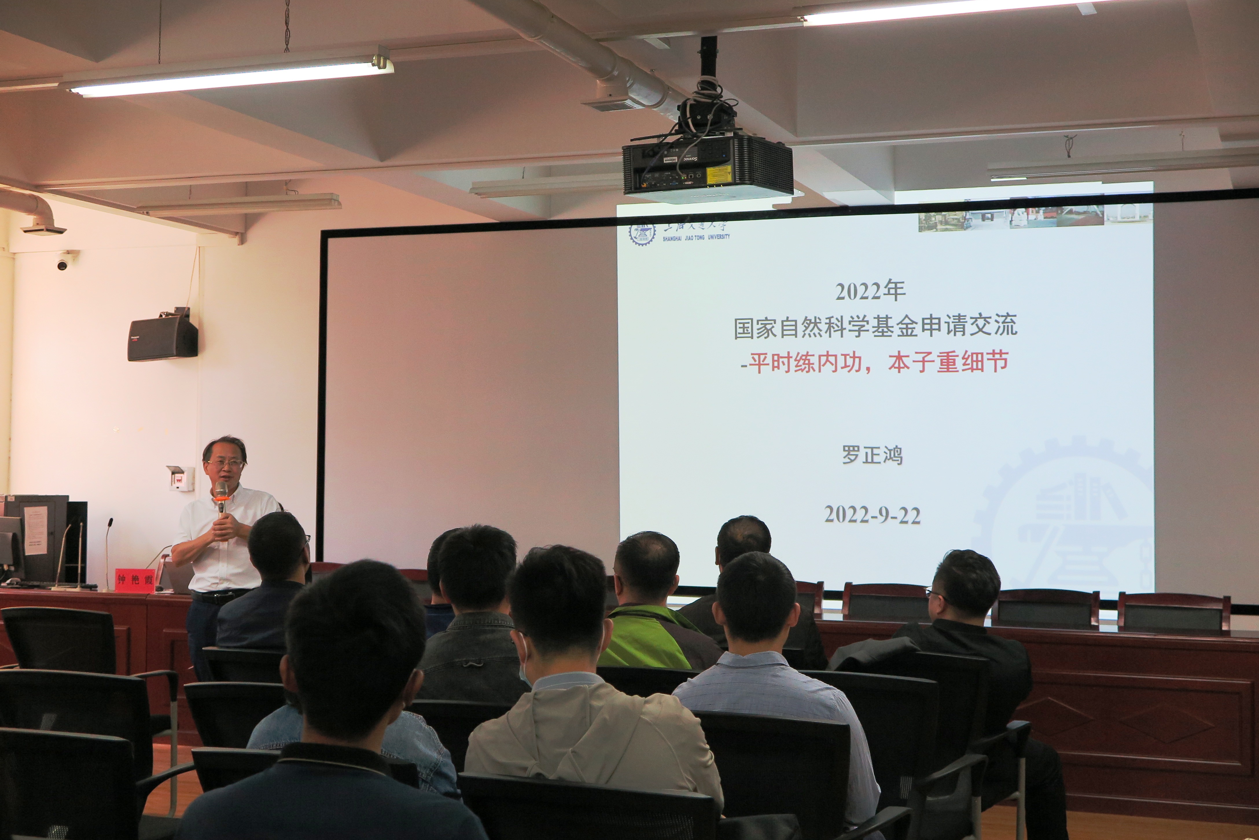会上,罗正鸿教授以《平时练内功,本子重细节》为题为大家作了基金申报辅导报告。以2022年度申请并获批的国基金重点项目为例,向参会人员传授了基金申请经验。