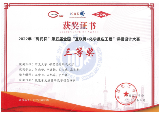 据悉,全国“互联网+化学反应工程”课模设计竞赛,是由中国化工学会主办的一项全国性赛事,旨在激发大学生学习化学反应工程课程的主动性和积极性,加深对基本概念、原理与方法的理解,锻炼大学生的工程思维和工程分析能力,培养科学精神和创新意识,加强学生在创新中理解和应用化学反应工程理论解决实际问题的能力,起到教学相长作用,并为我国化学反应工程教学数字化、信息化资源库的建设提供素材。