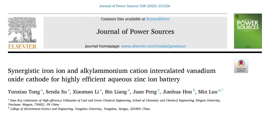 (省部共建煤炭高效利用与绿色化工国家重点实验室)罗民教授为本文的通讯作者,2019级水资源利用与化学化工博士研究生仝云霄同学为论文第一作者。本研究成果得到国家自然科学基金、宁夏自然科学基金、化学工程与技术一流学科基金支持。