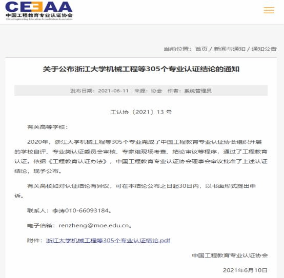 污污漫画讯 教师教学发展中心】近日,中国工程教育专业认证协会发布《关于浙江大学机械工程等305个专业认证结论的通知》(工认协〔2021〕13号),公布了2020年全国工程教育专业认证的认证结论,全国高校共有305个专业通过认证。我校化学工程与工艺专业名列其中,认证有效期为6年,自2021年1月至2026年12月。