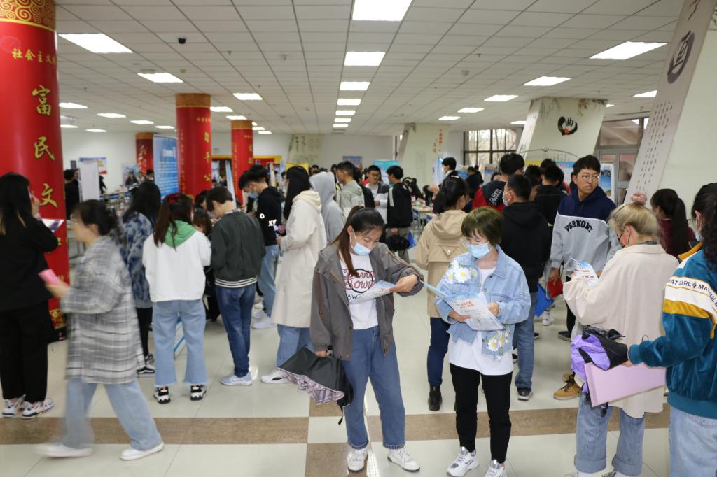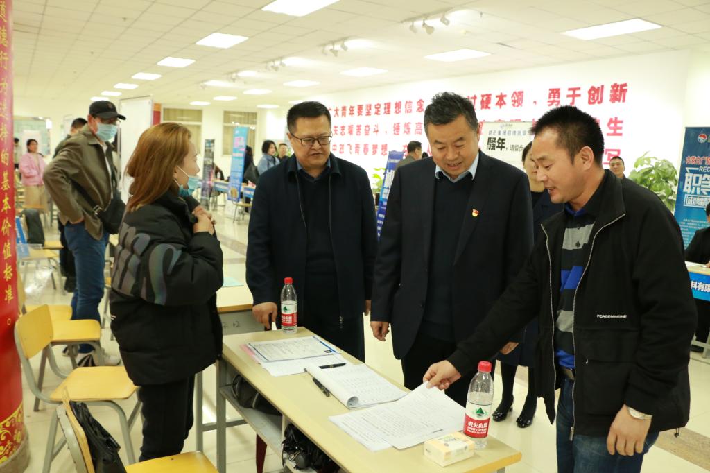 在文萃校区大学生活动中心举办2021届化工类毕业生招聘会,校党委常委、副校长李建设到招聘会场实地了解相关情况。