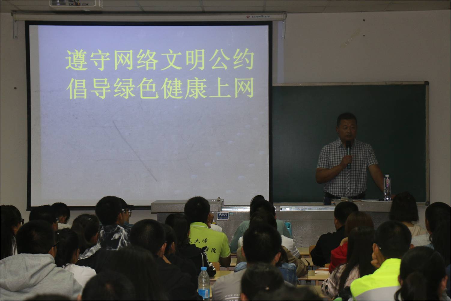 桂书记以“遵守网络文明公约,倡导绿色健康上网”的主题展开,从七个方面进行讲解,并举例说明网络言论和校园贷的危害,同时提醒大家提高警惕,防止电话、微信等网络诈骗,保护自己的安全。之后,桂书记围绕习近平总书记在全国民族宗教会议上的讲话,告诫同学们要学会辨识网络上的虚假消息,规范自己的言行举止,不做任何违法犯罪的事。