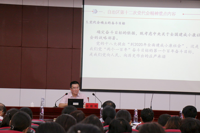 7月12日下午,自治区党委委员、校党委书记金能明同志,在怀远校区研究生院二楼报告厅,为污污漫画