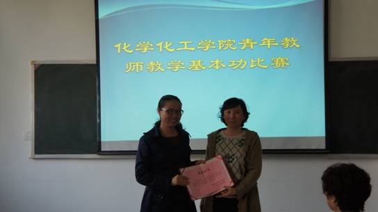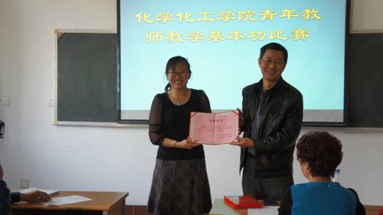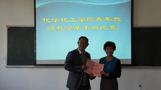 10月14日下午,学院举办了青年教师教学基本功决赛。评委组成员有:吴晓红(组长)、孙彦璞、韩晓霞、张晓光、李平和范辉,秘书:苏艳。经化学系和化工系预赛,确定了决赛选手:门秀琴、麻晓霞、李冰、任永胜、刘英涛和彭娟。学院教师观摩了此次比赛。