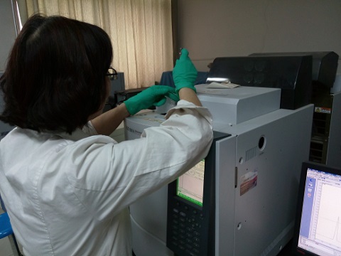 分析组李红英老师和戴小军老师对取回的六个染料样品进行苯测定。