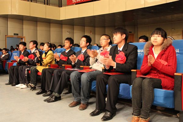 第一届“品牌学生”的决定》,校领导为12名化工“品牌学生”颁发了荣誉证书。8位“品牌学生”代表向与会领导、老师、同学汇报了自己的先进事迹。