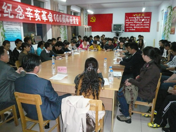 12#公寓党支部副书记高新华、化工学院学生会主席张嘉玮、2008级学生方姗、2010级学生孙绍哲、2011级学生赵亮等先后发言,从不同角度阐述了辛亥革命的伟大意义,回顾了百年前波澜起伏的反帝反封建斗争。大家一致认为,历经百年奋斗,中华民族的伟大复兴已经成为不可逆转、不可阻挡的发展趋势。面向未来,全体中华儿女应当更加紧密地携起手来,汇聚在民族复兴旗帜下,砥砺奋斗精神,共绘发展蓝图,共襄振兴大业,努力作出无愧于孙中山先生和辛亥革命先驱、无愧于我们伟大民族的历史贡献。