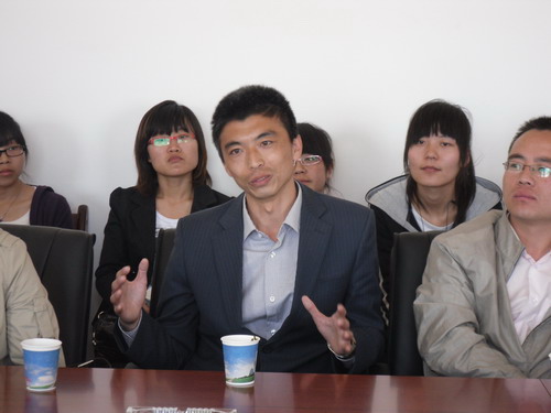 中卫市工业与信息化局副局长雍平华、华御化工公司总经理与师生座谈