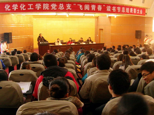 在B区图书馆报告厅隆重召开 “飞阅青春”读书节总结表彰大会。学院党总支书记常璇、副书记潘瑞、张宁及全体辅导员、各学生支部书记、全体学生党员及部分入党积极分子参加了会议。