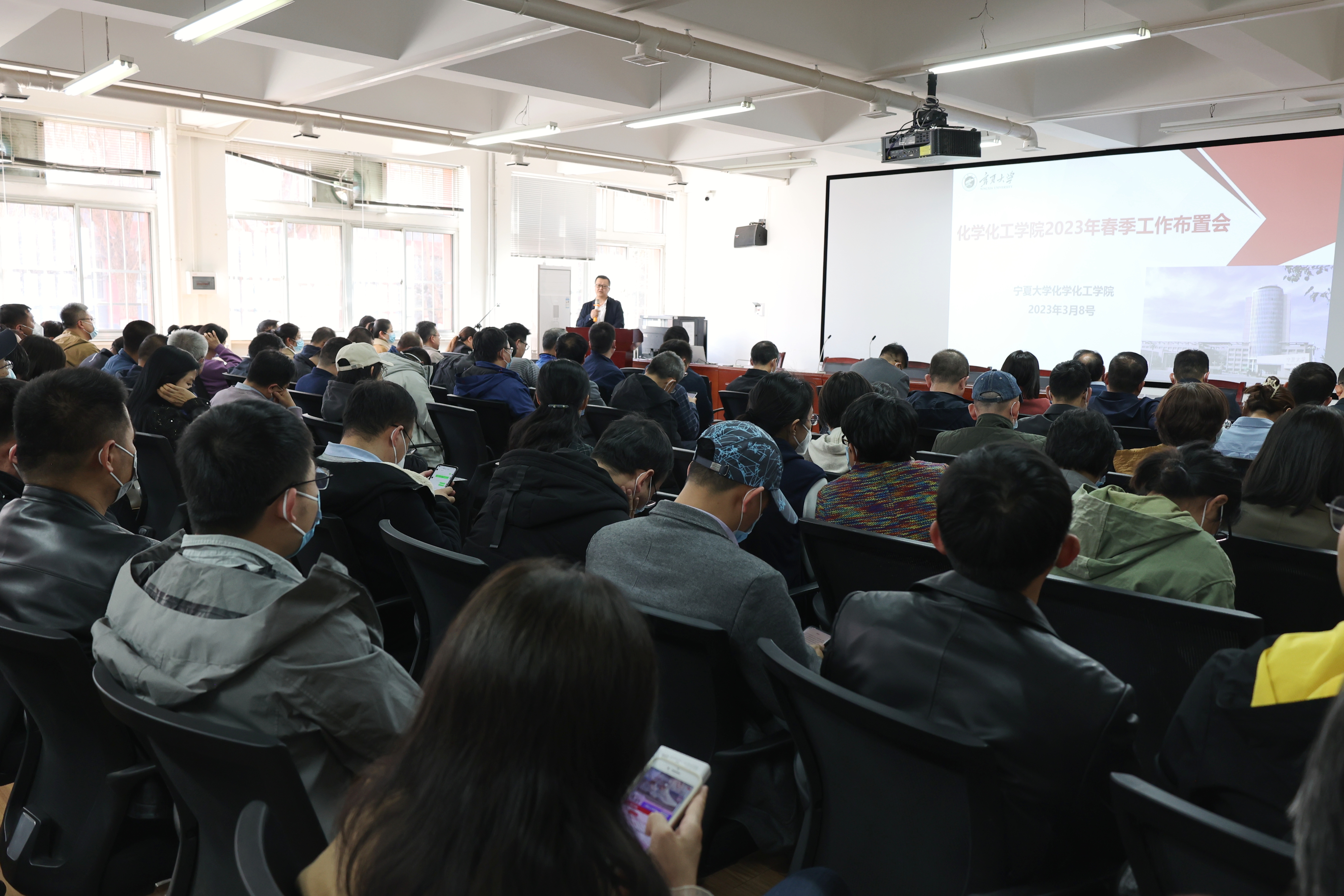 院长罗正鸿指出,2022年在全体师生的不懈努力下,学院在制度完善、条件改善、教学科研团队建设、产学研服务、师资建设、国际合作与交流及文化传承等方面均取得了可喜的成绩。年初,学院获批了教育部“111引智计划”,实现了学校及自治区零的突破。针对学院2023年度的重点任务,一是要规划谋划大项目,产出标志性成果,确保高质量完成一流学科整改、一级博士点申报以及国重实验室重组等重点任务。二是对“双一流”经费的分配及使用、研究生分配等问题,需完善相应机制并做到制度规范化、透明化。三是要积极改善学院师资队伍的实验条件,特别是改进近三年引进人才的科研条件。四是结合学院本学期工作,分管领导要结合各自分工创新工作平台和载体,建立工作台账,在规定的时间节点,高效启动、完成工作。五是要全体化院人继续以更加饱满的热情、更昂扬的斗志去为建设西部一流学院而努力奋斗。罗院长强调,2023年虽然任务艰巨,但只要全院师生团结一心,辛勤耕耘,砥砺奋进,将化学与化工建成具有区域特色、西部一流学科的目标指日可待。