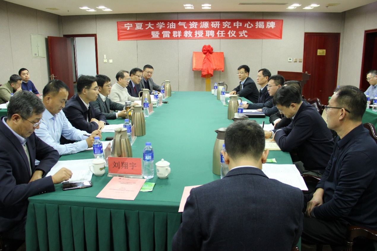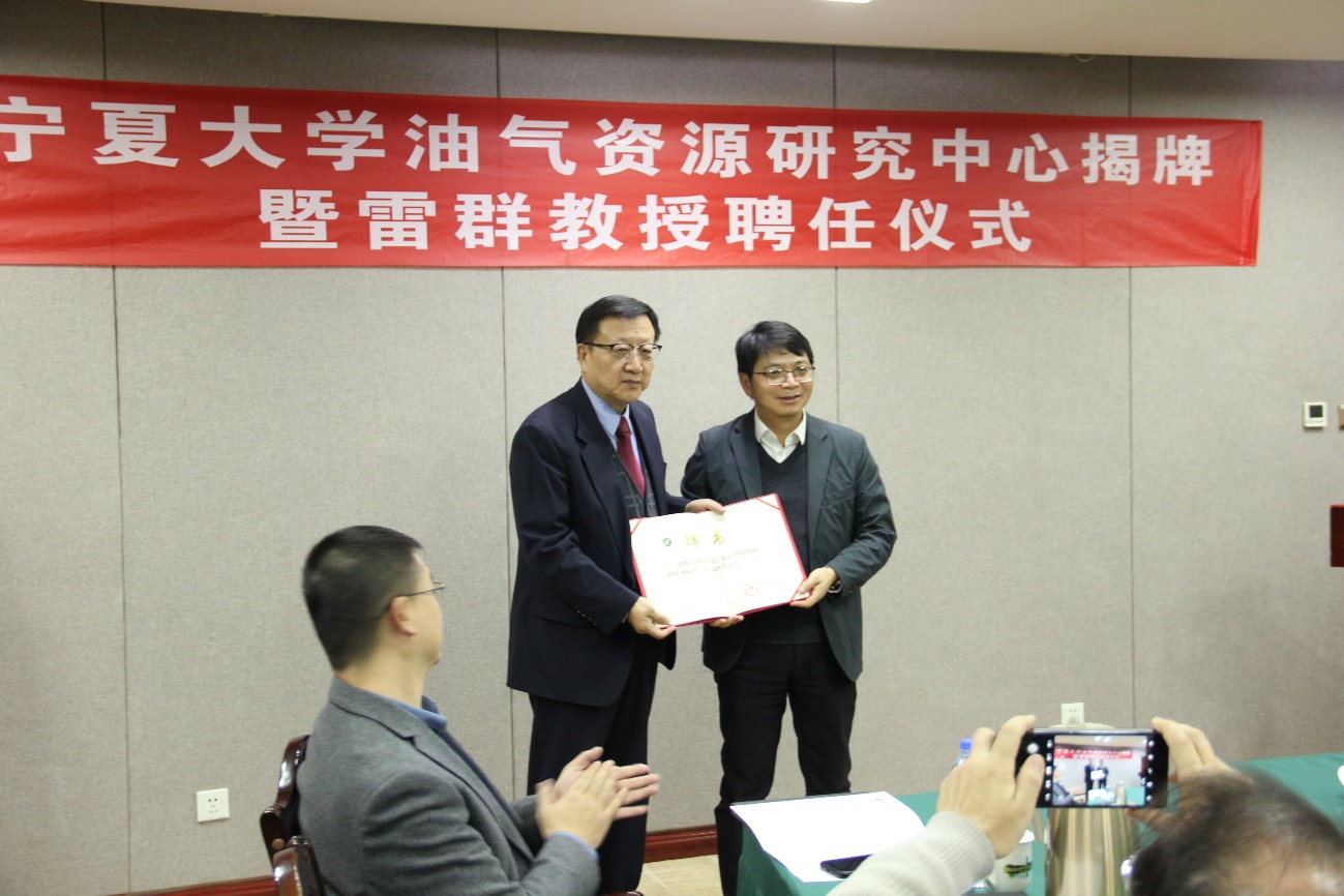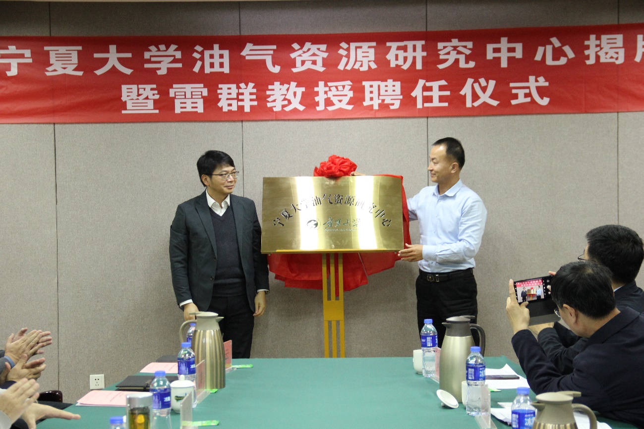 油气资源研究中心揭牌暨雷群教授聘任仪式在我校学术交流中心举行。校党委副书记、校长彭志科,校党委常委、副校长李学斌,学术副校长罗正鸿,自治区科学技术厅规划与基础研究处二级调研员茹福华出席揭牌仪式。