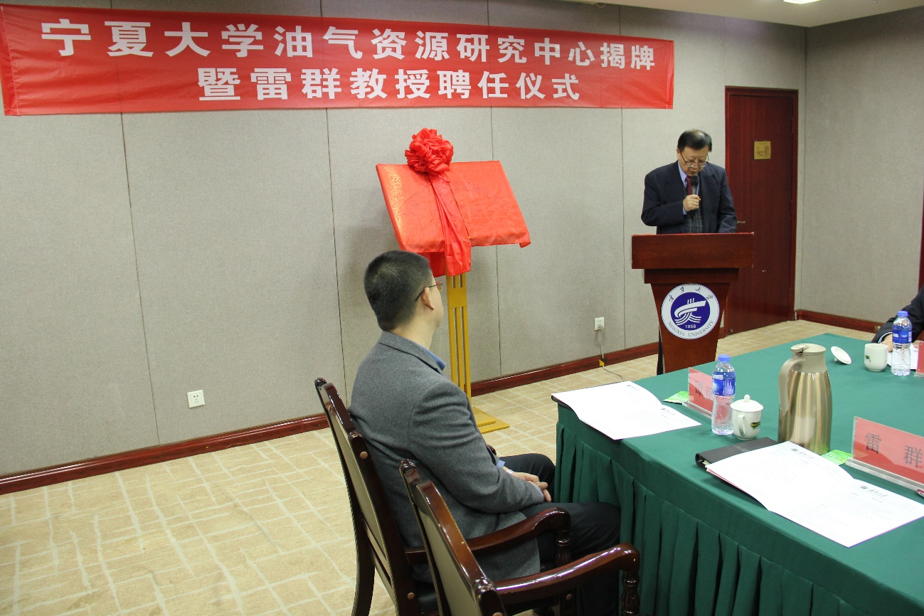 学校特聘教授、油气资源研究中心主任雷群做了慷慨动人的发言,对彭校长和学校党委的信任与支持万分感谢。他表示,作为一名石油战线的老兵、一名油气开发工程技术的科研工作者、一个土生土长的宁夏人,对能够再次回到家乡、参与家乡的建设感到非常激动和荣幸。他坚信,“老骥伏枥,志在千里”,在自治区领导的关心指导下、在校党委的坚强领导下、在油田企业的大力支持下,充分发扬石油人不怕苦、不怕累、不畏艰险的精神,一定能做好这份工作。